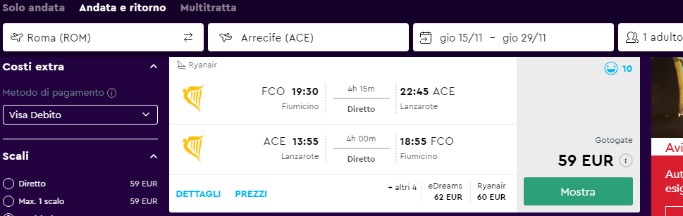 Canarie low cost? Con Ryanair potrai acquistare dei voli diretti da Roma a Lanzarote, isola appartenente all’arcipelago delle Canarie, da soli €59 a/r!