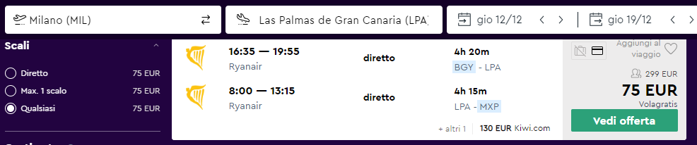 Combinando dei voli Ryanair diretti da Bergamo, dal 12 al 19 Dicembre (come esempio), al costo di €75 a testa al quale si sommeranno i €94,5 a testa per 7 notti (nel caso di una prenotazione da 4 persone), il prezzo complessivo di questo pacchetto fai da te sarà di soli €169 a testa.