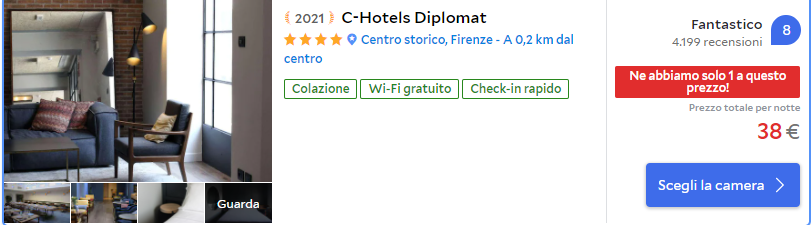 C-Hotels Diplomat vanta ottime recensioni su Tripadvisor (4/5) e sorge nei pressi della stazione ferroviaria di Santa Maria Novella e a 10 minuti dal Duomo di Firenze. Questo albergo offre un cortile interno dove è possibile consumare la colazione, un garage convenzionato, un bar e camere dagli arredi moderni con aria condizionata, scrivania e bagno privato.
