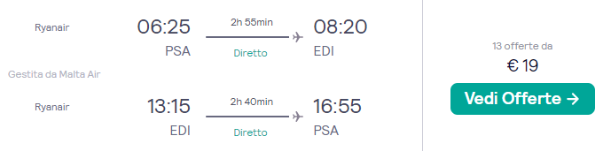Cyber Week Ryanair! Voli low cost per Edimburgo, Scozia da 8 aeroporti da soli €19 A/R!