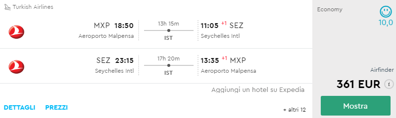 Milano – Mahe (Seychelles) a/r