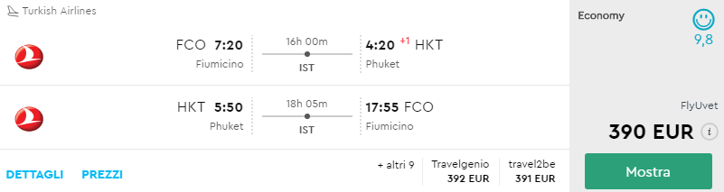 I voli per Phuket sono disponibili anche da Napoli, Catania e Bari.
