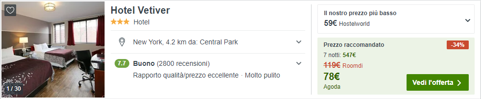 Durante il tuo viaggio a New York, potresti prendere in considerazione l’ Hotel Vetiver, situato a Brooklyn e a soli €78/notte per camera doppia nel periodo natalizio!