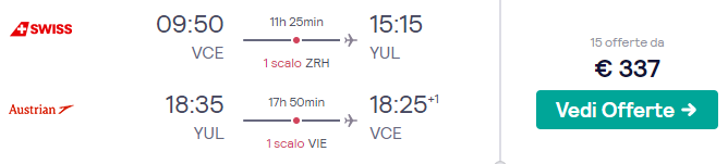 Un’altra buona occasione per visitare il Canada Orientale! Parti da Venezia con l’ottima Swiss ed acquista il tuo volo a partire da €337 a/r in classe Economy Light!