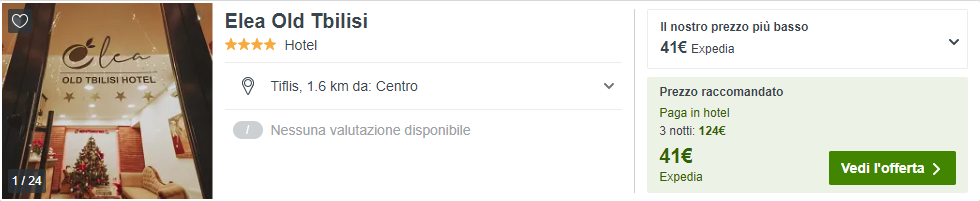 Se deciderai di utilizzare la capitale Tbilisi come base per l’esplorazione del paese, ti consigliamo di soggiornare presso l’ottimo e centralissimo hotel a 4 stelle Elea Old Tbilisi disponibile a soli €41/notte