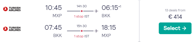 Voli Turkish Airlines per Bangkok da Roma & Milano da soli €414 a/r!