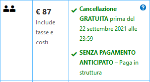 Come prenotare❓ Clicca sui link in alto in rosso o in azzurro o sulle immagini. Ricorda che potrai modificare le date e/o il numero di adulti dopo aver cliccato, il prezzo mostrato è valido a Settembre e inizio Ottobre.