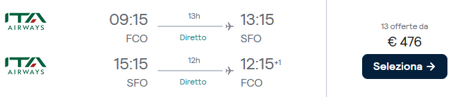 Ottime tariffe offerte da ITA Airways per volare in California! Acquista il tuo biglietto a/r sulla tratta Roma Fiumicino – San Francisco a soli €476 (classe Economy light con bagaglio a mano).