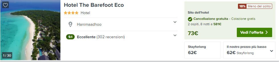 Coccolatevi presso un’ottima struttura a 4 stelle, il Hotel The Barefoot Eco a soli €62/notte,con colazione inclusa, per camera doppia!