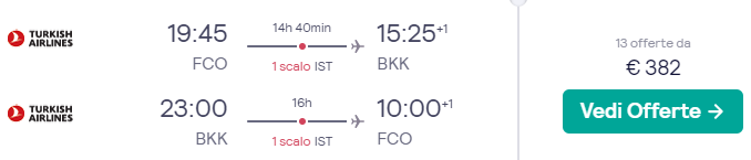 Offerta Turkish Airlines per la Thailandia! Voli low cost per Bangkok da ben 7 aeroporti italiani da soli €372 a/r con bagaglio da stiva!