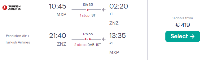 Desiderosi di un viaggio esotico? Raggiungi le splendide spiagge di Zanzibar da soli €419 a/r, con bagaglio da stiva incluso, con l’ottima compagnia Turkish Airlines!