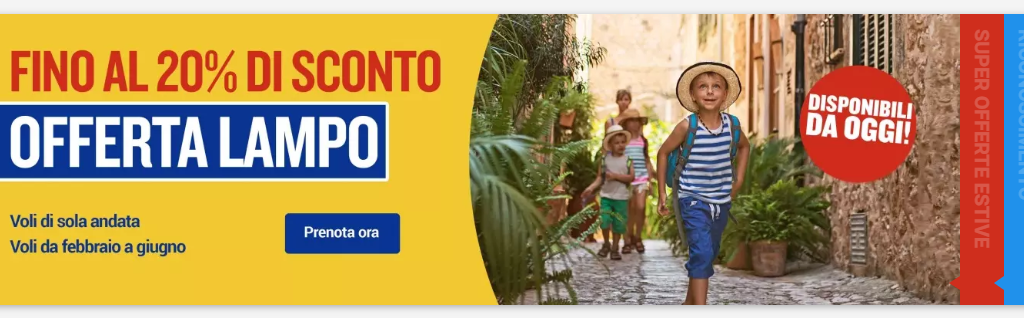 Ancora un’offerta Ryanair! Le rotte low cost sono tantissime, ci limitiamo ad elencare alcune fra le tariffe più interessanti dai maggiori aeroporti italiani. Si vola a partire da soli €5 a tratta! (molte valide nei weekend)