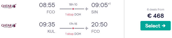 Promo Qatar Airways da Roma: voli per Maldive, Singapore, Bangkok e Kuala Lumpur da Roma da soli €419 a/r! Anche multitratta!
