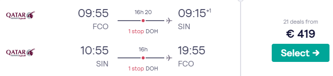 Buon prezzo per volare con la compagnia numero 1 al mondo verso il sud est Asiatico! Acquista il tuo volo da Roma Fiumicino  a partire da soli soli 419€ per un biglietto a/r! Possibilità di combinare andata e ritorno verso/da destinazioni diverse, come mostrato in basso.