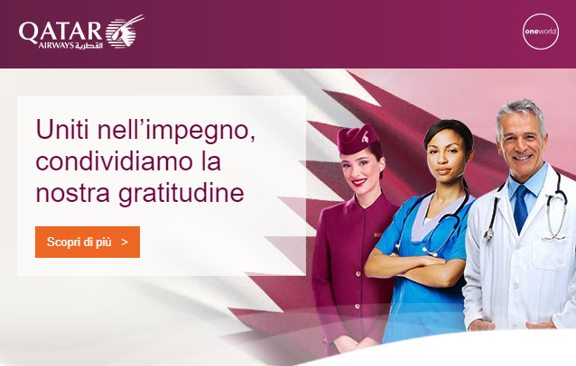 La compagnia n.1 al mondo, Qatar Airways, ha lanciato una splendida iniziativa decidendo di ringraziare il duro lavoro degli operatori sanitari regalando loro ben 100.000 biglietti gratuiti verso una (o addirittura due!) fra le tante fantastiche destinazioni della rete della compagnia.
