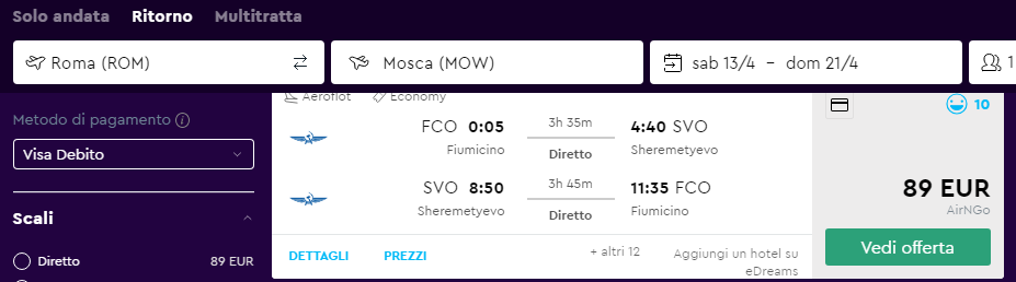 ✈️ Roma – Mosca a/r