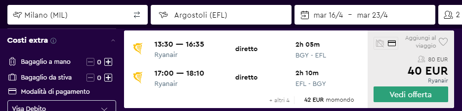 Questa volta vi proponiamo una soluzione per 2 persone davvero low cost per trascorrere 7 giorni di vacanza a Cefalonia low cost! Con soli €123 complessivi a testa potrete soggiornare, dal 16 al 23 Aprile, presso l’eccellente struttura Sunshine Resort , con ottime recensioni su Tripadvisor (4/5). Il prezzo del volo è di soli €26 a testa mentre l’alloggio per 2 persone costa solo €23.85 a notte!