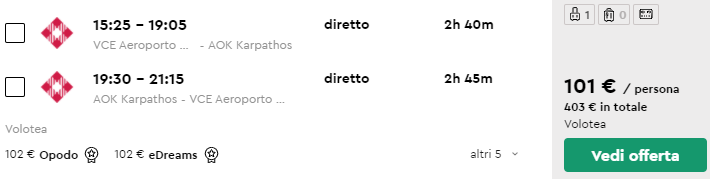 Seguono i link per prenotare separatamente volo e pernotto, le date alternative e tutte le informazioni su questo pacchetto per 4, 3 o 2 ospiti.