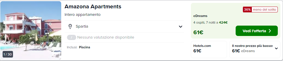 Clicca su Expedia per il pernotto Amazona Apartments (es. 1-8 Luglio)