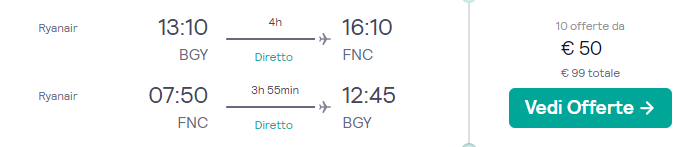 Il volo selezionato come esempio da Bergamo, costerà solo €49,5 a/r per passeggero; il prezzo totale minimo mostrato del soggiorno più volo, sarà quindi di €172 a testa (€49,5 + €122,5).