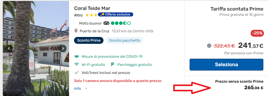 Istruzioni per prenotare: dopo aver cliccato sui link in alto evidenziati in azzurro, selezionare i filtri “Prezzo” e “hotel 3 stelle” per ordinare i risultati di ricerca a partire dal più economico; il pacchetto indicato sarà il primo risultato in lista.
