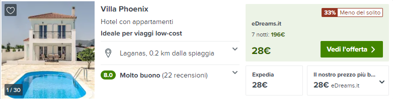 Vi proponiamo una settimana, per 2 persone, ad un prezzo assolutamente interessante! I voli a/r presi come esempio da Milano Malpensa costano solamente €43 a/r a testa e il soggiorno presso l’ottima struttura Villa Phoenix costerà €98 a testa per 7 notti (€197/2). Il costo a persona sarà quindi di €141.