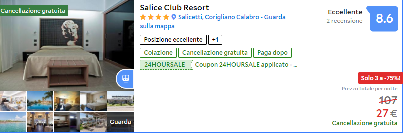 Clicca qui per la tua vacanza a 4 stelle ➡️ Salice Club Resort (€27/notte, es. 18-25/09)