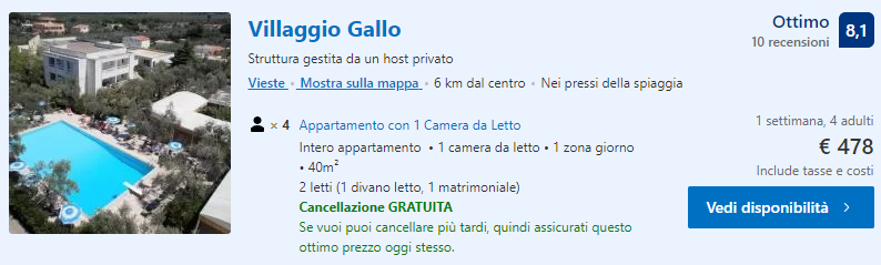 Clicca qui per la vostra vacanza low cost ➡️ Villaggio Gallo (es. 8-15/06, terzo risultato in lista)