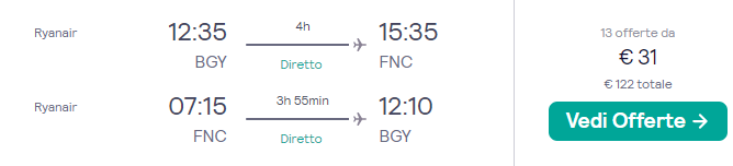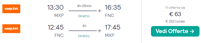 Abbiamo creato per voi una combinazione volo + hotel per 4 persone (oppure 3 o 2) davvero conveniente, al fine di trascorrere la settimana natalizia nell’isola di Madeira. I voli scelti per voi partiranno da Milano Malpensa nei giorni 18-25 Dicembre, al costo di €48 a/r a testa o da Bergamo Orio al Serio nei giorni 19-26 Dicembre al costo di €78 a/r a testa.