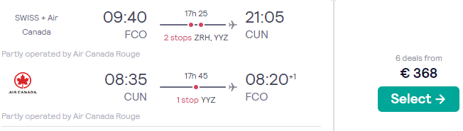 ✈️ Roma – Cancun a/r (disponibilità quotidiana nel periodo indicato)
