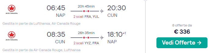 ✈️ Napoli – Cancun a/r (disponibilità quotidiana nel periodo indicato)