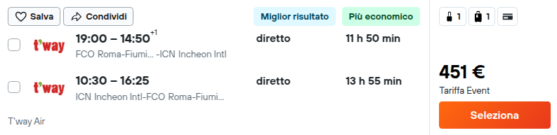 Organizza un viaggio in estremo Oriente! T’way Air ha messo in vendita delle fantastiche tariffe per volare da Roma Fiumicino a Seoul disponibili da soli €451 andata e ritorno con bagagli da stiva inclusi.