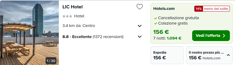 Potreste prendere in considerazione il LIC Hotel, con ottime recensioni, colazione inclusa e e disponibile al costo di €156/notte per camera doppia!