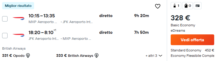 Sfrutta queste ottime tariffe per i voli diretti per JFK offerte delle compagnie Oneworld! Parti da Milano Malpensa con soli €328 a/r (classe Economy Light, solo bagaglio a mano).
