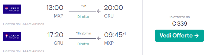 Finalmente eliminate le restrizioni in uscita (dettagli qui >>)! Latam offre un’ottima tariffa per volare a San Paolo senza scali: partenza da Malpensa a soli €428 a/r!