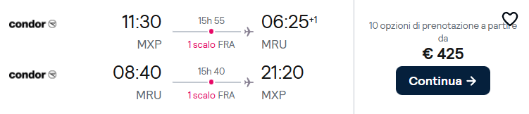✈️ Milano Malpensa – Mauritius a/r