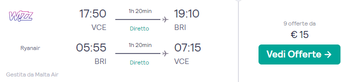Venezia – Bari – Venezia da €15 a/r