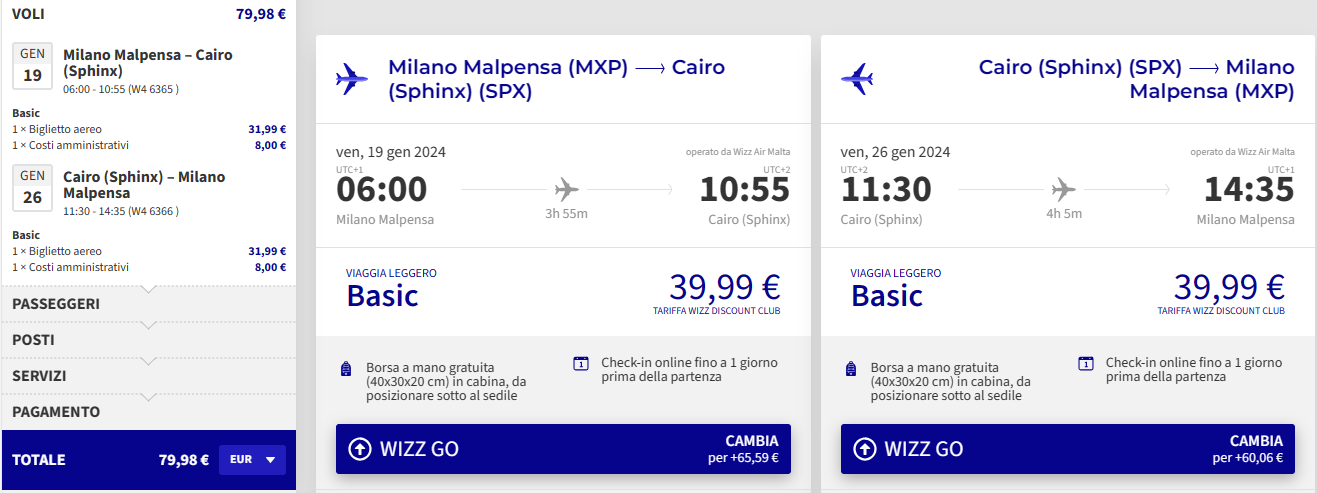 ✈ Milano – Cairo a/r (tariffa Wizz Air Discount Club)