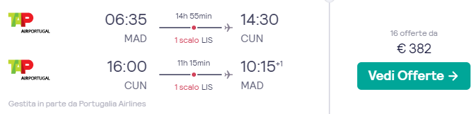 Si vola in Messico a partire da soli €262 a/r con TAP (classe Economy Light, solo bagaglio a mano).
