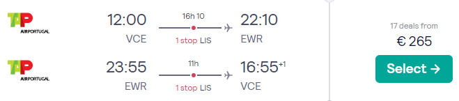 Ottime tariffe TAP per raggiungere New York EWR da Venezia! Si vola a partire da soli €265 a/r! (classe Economy Light, solo bagaglio a mano)