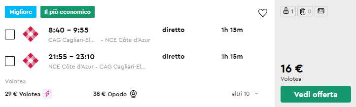 ✈️ Cagliari – Nizza a/r