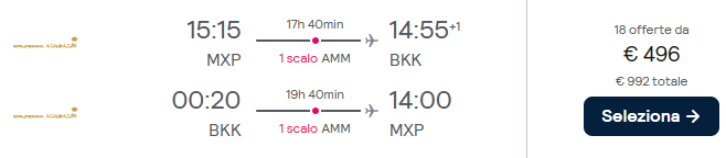 Royal Jordanian sta offrendo tariffe molto convenienti per volare in Thailandia nel periodo migliore! Prenota il tuo volo da Malpensa a Bangkok a €496 a/r.