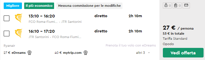 Il costo esemplificativo mostrato nel titolo è dato dalla somma del costo del volo da Fiumicino, €27 a testa, e di un soggiorno di 3 notti a €43,5 a testa (€87/2).