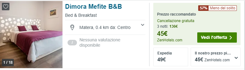 Weekend d’autunno a Matera! Camera doppia in eccellente struttura a €22/notte a testa!