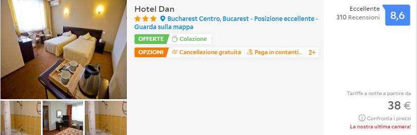Se sceglierai Bucarest, potresti considerare l’ Hotel Dan, con buone recensioni e perfettamente localizzato!