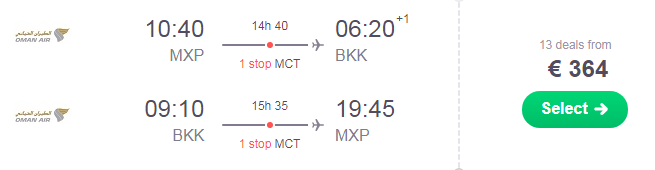 ✈ Milano – Bangkok a/r (scali brevi in Oman)