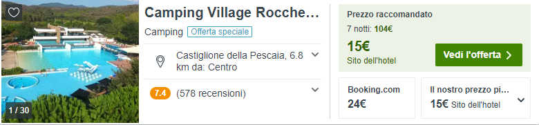 Il Camping Village Rocchette  è situato a 300 metri dalla spiaggia, a soli 5 minuti di auto dalla pittoresca Castiglione della Pescaia, e vanta buone recensioni su Tripadvisor pari a 3,5/5!