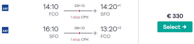 Roma – San Francisco a/r  (2 giornate a Copenhagen)