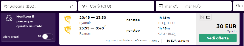 ✈ Bologna – Corfù a/r