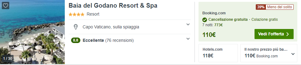 Clicca qui per la vostra vacanza a 4 stelle ➡️ Baia del Godano Resort & Spa (€68/notte, es. 18-25/09 – 2 ospiti)